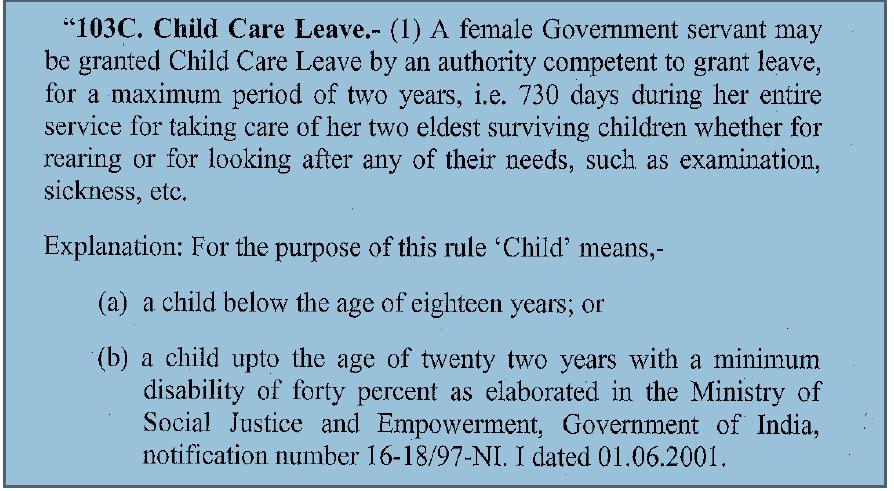 राजस्थान सेवा नियम, 1951 नियम 103 सी Child Care Leave