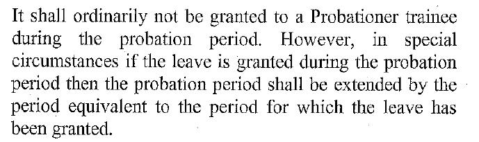 प्रोबेशन में देय नहीं- प्रोबेशन में यह अवकाश देय नहीं होगा लेकिन विशेष परिस्थितियों में कोई अवकाश लेता है तो प्रोबेश्नर का प्रोबेशन काल उतना ही बढ़ाया जाएगा।यह अवकाश अधिकार नहीं है। इसे लेने के लिए संबंधित अथॉरिटी से पूर्वानुमति लेना जरूरी होगा। यदि महिला कर्मचारी ड्यूटी से गैरहाजिर रहती है और उसके बाद चाइल्ड केयर लीव के लिए आवेदन करती है तो उसे यह स्वीकृत नहीं किया जाएगा।