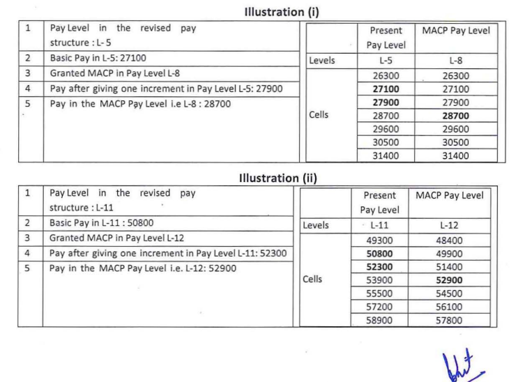 - नियमित पदोन्नति के समय वेतन का कोई और निर्धारण नहीं होगा, यदि पदोन्नति एसीपी/एमएसीपी के तहत दिए गए समान वेतन स्तर पर है। हालाँकि, यदि पदोन्नति उच्च वेतन स्तर वाले पद पर है तो वेतन मैट्रिक्स में केवल उस वेतन स्तर में वेतन समान सेल पर तय किया जाएगा और यदि कोई समान सेल नहीं है तो तत्काल अगले सेल पर।